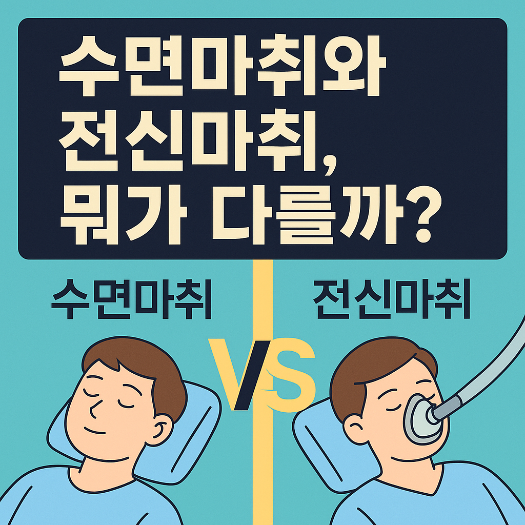 병원에서 수술이나 시술을 앞두고 마취 이야기를 들으면 ‘수면마취 할 거예요’ 혹은 ‘전신마취가 필요합니다’ 같은 말을 종종 듣습니다. 얼핏 보면 둘 다 ‘자는 것’처럼 들리는데, 사실 이 둘은 분명한 차이가 있습니다. 오늘은 수면마취와 전신마취의 차이를 쉽고 명확하게 알려드릴게요.